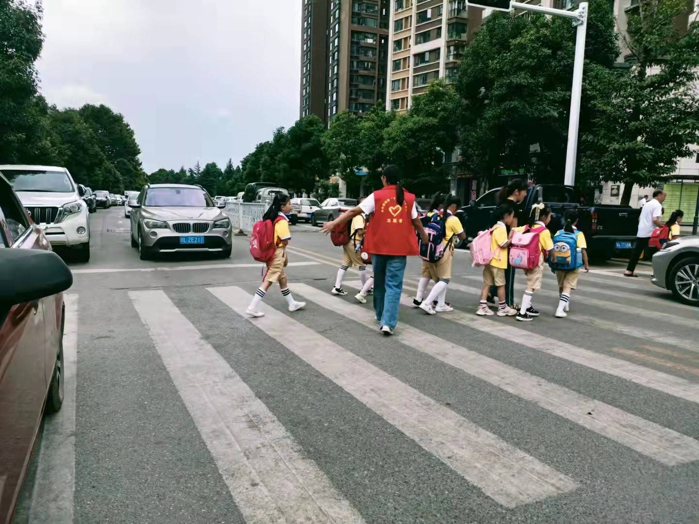 街道各村(社区)新时代文明实践站切实发挥好阵地作用,动员组织辖区青年志愿者参加到全国文明城市巩固提升各项行动中来。为了确保辖区幼儿园及中小学周边的交通安全,打造平安、健康、安全的校园周边环境,社区组织志愿者组成“红马甲”护校队,每天上学放学时段对学校周边主要路段、路口的来往车辆进行分流以及疏导,并引导接送学生的车辆有序停放,全力保障校园周边路段交通文明有序,有效减少了交通不文明行为,改善了群众的通行环境。