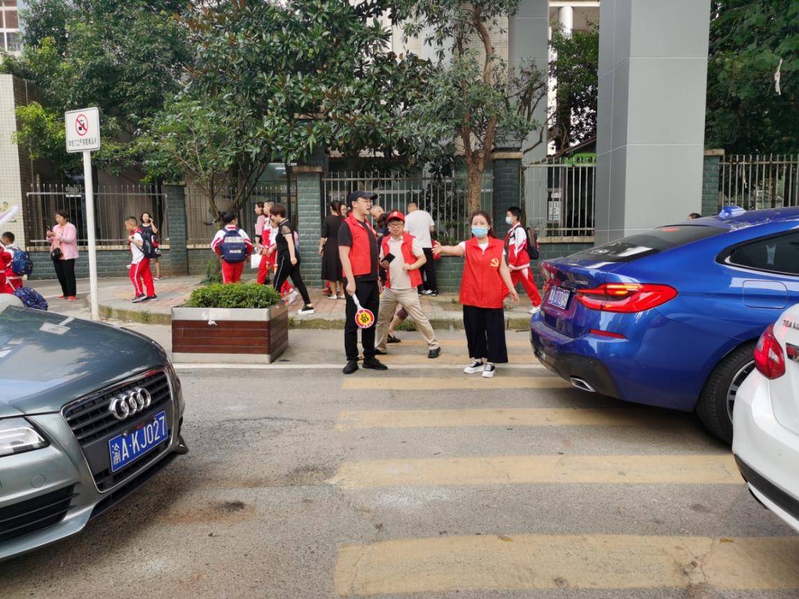一大早,护校队志愿者们提前来到辖区各所学校门口,多点位分工,现场引导学生保持安全距离,开展文明劝导、秩序维护、疫情防控知识宣传等志愿服务。志愿者们对学校周边主要路段、路口的来往车辆进行分流以及疏导,并指挥送学生入学的车辆有序停放,全力确保校园周边路段交通秩序平稳有序。