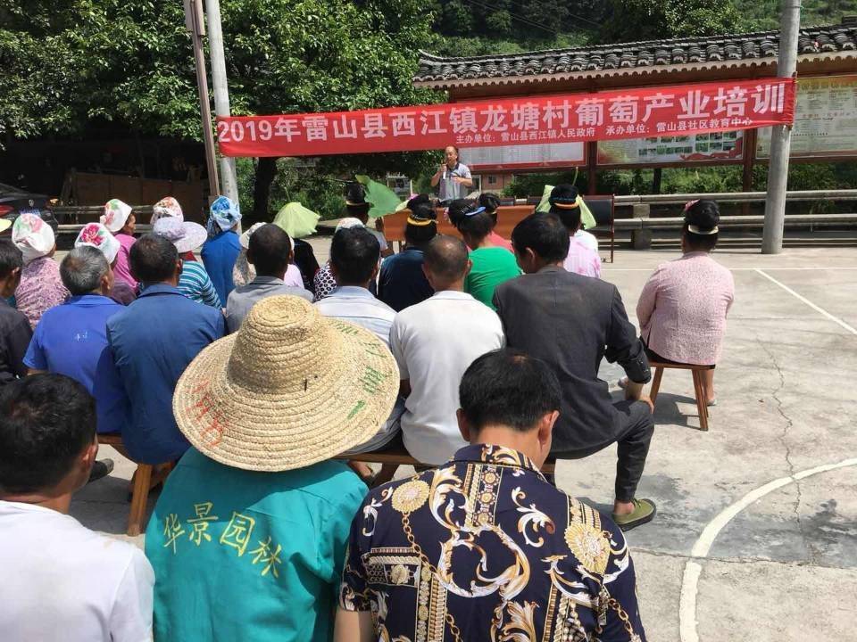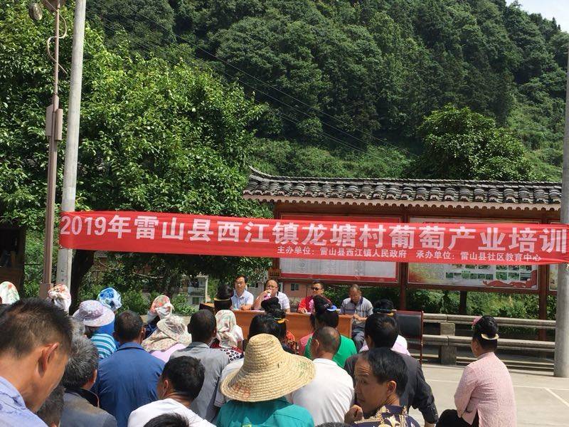 为了助推龙塘村葡萄产业的发展,2019年6月23日星期天,雷山县社区教育培训办公室,组织有关专家和老师以送教下乡下村的形式,上午 8点前来到龙塘村,开展了为期一天的“水晶葡萄优质高产栽培管理技术”培训。参加培训的村民学员积极性很高,共有60余人。