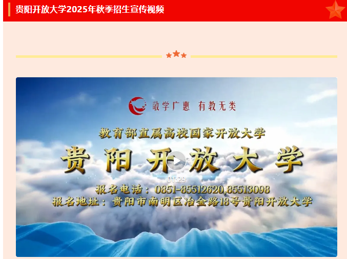 学历提升丨免试入学+灵活学习,贵阳开放大学2025年秋季招生宣传片发布