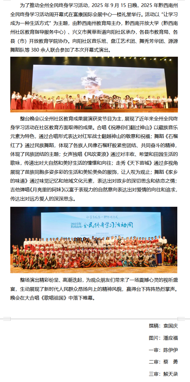 向阳社区音乐班参加2025年黔西南州全民终身学习活动周开幕式演出
