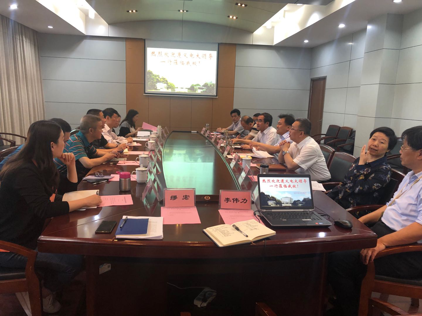 在无锡开大考察学习期间,5月28日早上两校召开了座谈会,座谈会上首先由无锡开大党委书记刘彬对无锡开大近几年的社区教育工作情况和研究发展情况做了详尽的介绍。通过刘书记的介绍我们了解到,无锡开大在对社区教育的研究和发展当地的社区教育工作中研究深入、成效突出,深受当地政府的肯定和支持。会上胡大力校长代表遵义电大也对无锡开大同仁的倾囊相授、传经送宝深表感谢,并希望两校能在更多的实践工作中长期合作,保持永久联系。