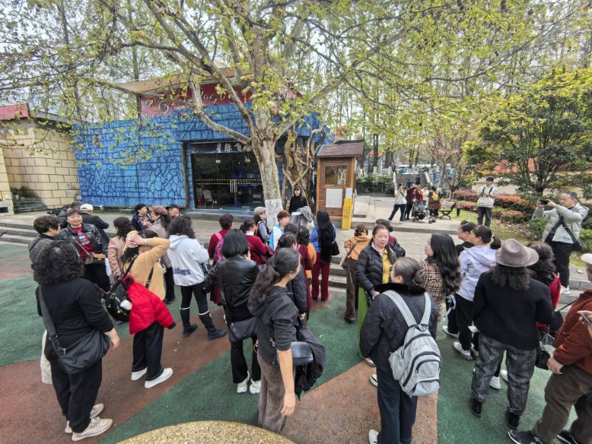 河滨公园东北门,我们准时集合!✨ 13:50,同学们精神饱满,整装待发。班长清点人数,组长明确职责,安全第一,快乐研学! #春日寻光记 #银龄学员 #安全第一